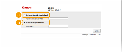 Vælg [Systemadministratortilstand] eller [Standardbrugertilstand].