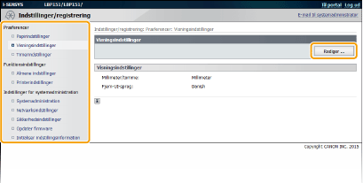 For at kunne ændre indstillingerne under [Indstillinger for systemadministration] skal du dog logge på med systemadministratorstatus.