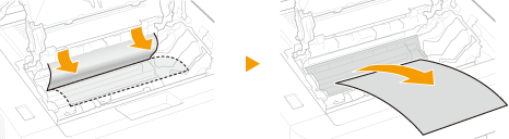 Træk ikke det fastklemte papir ud med magtHvis du trækker papiret ud med magt, kan du ødelægge dele i maskinen. Hvis du ikke kan fjerne papiret, skal du kontakte din lokale autoriserede Canon-forhandler eller Canon HelpDesk. Når et problem ikke kan løses