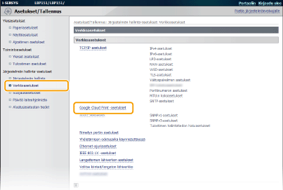 [Google Cloud Print -asetukset].