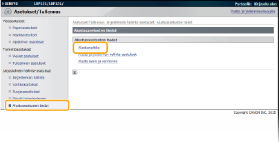 Käynnistä Remote UI ja kirjaudu sisään järjestelmänvalvojan tilassa.