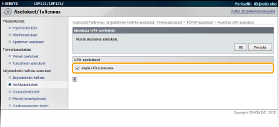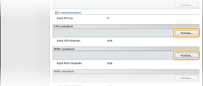 Valitse valintaruutu, kun haluat käyttää tulostuksessa LPD-protokollaa. Poista valinta, jos et halua käyttää LPD-tulostusta. [Käytä RAW-tulostusta]