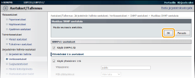 Jos SNMPv1-asetuksia ei tarvitse muuttaa, jatka seuraavaan vaiheeseen.