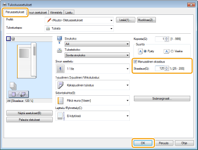 Valitse [Manuaalinen skaalaus] -valintaruutu