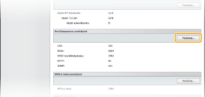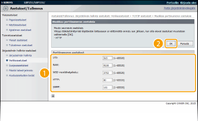 Vaihda HTTP:n käyttämä portti. HTTP:tä käytetään tiedonsiirtoon verkon yli, esimerkiksi kun laitetta käytetään Remote UI kautta.