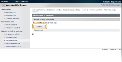 Käynnistä Remote UI ja kirjaudu sisään järjestelmänvalvojan tilassa.