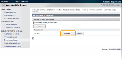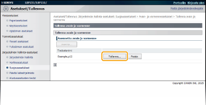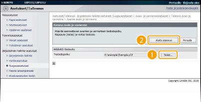Asenna avainpari valitsemalla [Avain- ja varmenneasetukset] tai CA-varmenne valitsemalla [CA-varmenteen asetukset].