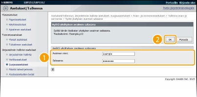 Syötä avainparin nimi ja salasana ja valitse [OK].
