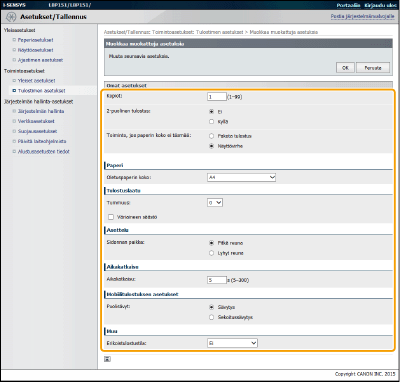 Aseta paperikoko ja paperityyppi