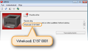 Tulostimen tilaikkunassa näkyy virheilmoitus, kun tulostuskäsittelyssä on ongelma, kun laitteen tiedonsiirto ei onnistu tai kun jokin muu ongelma estää normaalin toiminnan. Seuraavassa luettelossa on lisätietoja virheilmoituksista.