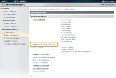 [Innstillinger for Google Cloud Print].