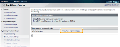 Registrere maskinen med Google Cloud Print
