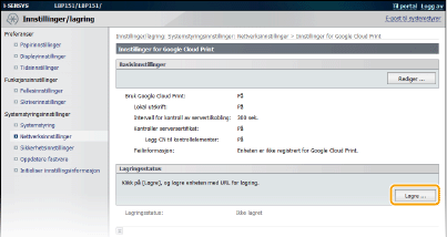 Klikk på [Lagre] i [Lagringsstatus].