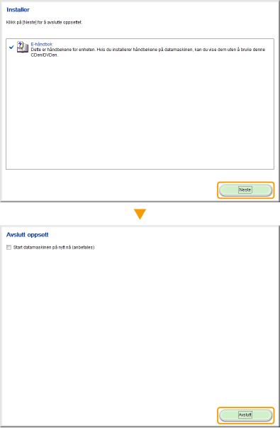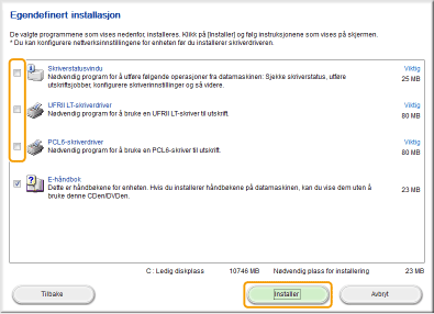 Fjern merket i alle avmerkingsbokser bortsett fra [E-håndbok] og klikk på [Installer].