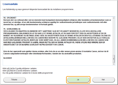 Les lisensavtalen og klikk på [Ja] for å godta.