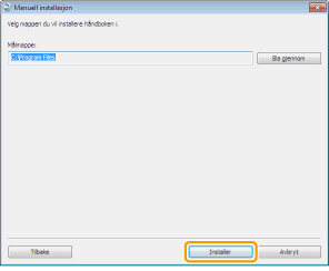 Hvis du vil endre installasjonsmappe, klikker du på [Bla gjennom] og velger ønsket mappe.