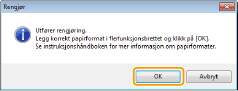Papiret mates sakte inn i maskinen, og rengjøring starter. Rengjøringen er utført når papiret er helt utløst.