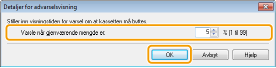 Du kan angi mengden som må være igjen i tonerkassetten (i %) for å vise meldingen, i intervaller på 1 %. Fabrikkinnstillingen er stilt inn til 10 %.