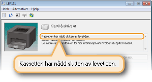 Den viste mengden med toner som er igjen i kassetten kan bare brukes som en veiledning og kan variere fra den faktiske mengden.