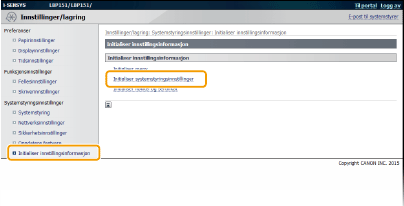 Hvis du vil nullstille innstillingene [Nøkkel- og sertifikatinnstillinger] og [CA-sertifikatinnstillinger] i [Sikkerhetsinnstillinger], kan du se Nullstille innstillinger for nøkkel og sertifikat.