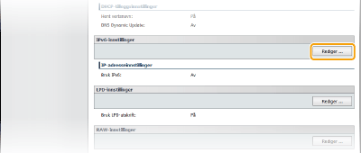 Bruk Fjernkontroll til å angi IPv6-adresser. Før IPv6-adresser angis, sørg for at IPv4-adressen har blitt angitt korrekt (Vise nettverksinnstillinger). Du kan registrere opptil ni av IPv6-adressene nedenfor.