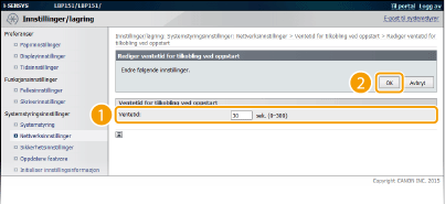 Angi ventetiden før kommunikasjon med nettverket starter, og klikk på [OK].