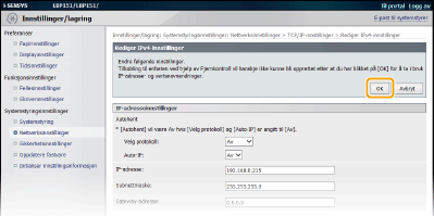 Klikk på [Rediger ] i [IPv4-innstillinger].