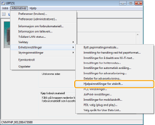Skriv alltid ut i stillemodus![]() Du kan stille maskinen inn på stillemodus, slik at den alltid skriver ut i stillemodus. Endre maskininnstillingene i skriverstatusvinduet.