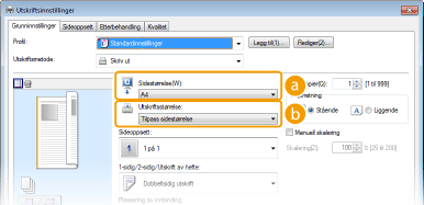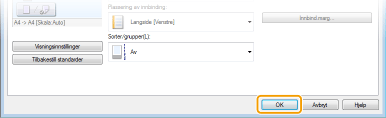 Du kan enkelt spesifisere sidelayout, innbindingsposisjon osv. på forhåndsvisningsbildet. Klikk på [Hjelp] på skriverdriverens skjermbilde for mer informasjon.