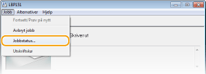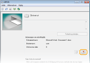 Avbryte fra FjernkontrollDu kan avbryte utskriften fra siden [Jobbstatus] i Fjernkontroll. Kontrollere den gjeldende statusen for utskriftsdokumenter