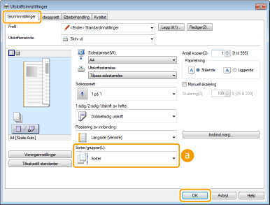 Når du skriver ut kopier av dokumenter med flere sider, velg [Sorter] for å skrive ut komplette sett i siderekkefølge. Denne funksjonen er nyttig når du gjør klar dokumenter for utdeling på møter eller presentasjoner.