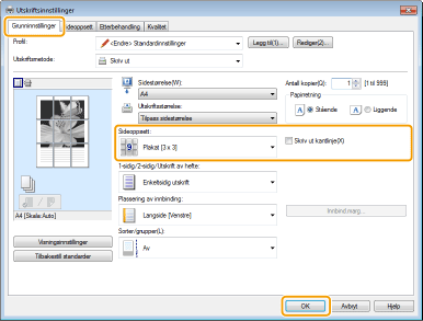 Du kan skrive ut en side av et dokument på flere sider. Hvis du for eksempel gjør et ettsiders dokument i A4-format ni ganger større, vil du ha en plakat på 3x3 A4-ark etter at du skriver ut dokumentet og limer det sammen.