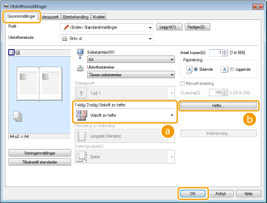 Velg [Utskrift av hefte] i [1-sidig/2-sidig/Utskrift av hefte]