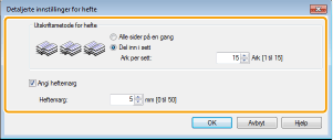 Klikk på [Hefte] for å spesifisere detaljerte innstillinger etter behov