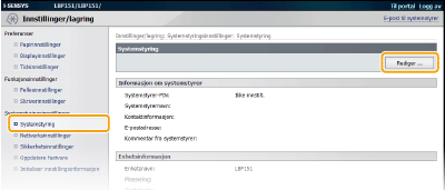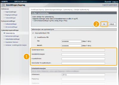 Angi navnet og kontaktinformasjonen til systemstyreren etter behov, og klikk på [OK].
