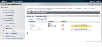 Klikk på [Lagre standardnøkkel] til høyre for nøkkelparet du vil bruke for klientautentisering.