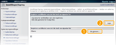 Klikk på [Bla gjennom], angi filen for signeringsforespørselen og klikk på [Lagre].