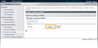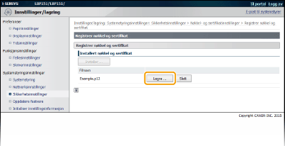 Klikk på [Nøkkel- og sertifikatinnstillinger] for å installere et nøkkelpar, eller på [CA-sertifikatinnstillinger] for å installere et CA-sertifikat.