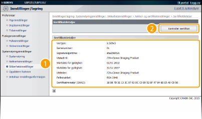 Kontroller sertifikatdetaljer, og klikk på [Kontroller sertifikat].