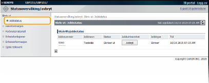 Du kan klikke på [Avbryt] for å slette utskriftsjobben for et dokument som for tiden skriver ut eller venter på å bli skrevet ut.