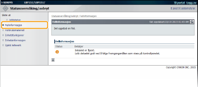 Når det oppstår en feil kan du vise denne siden ved å klikke på meldingen vist under [Feilinformasjon] på portalsiden (hovedside).