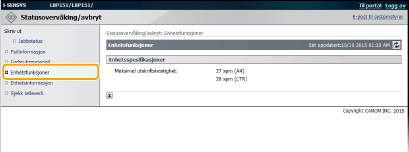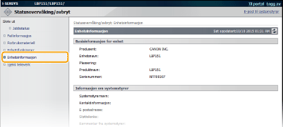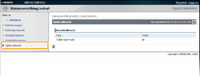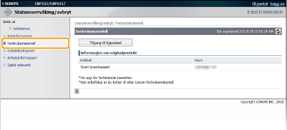 Modellnummeret for tonerkassetten og annen informasjon vises. Du kan også klikke på [Kontroller detaljer for forbruksmateriell ] på portalsiden (hovedsiden) for å vise skjermbildet for å sjekke forbruksvarer.