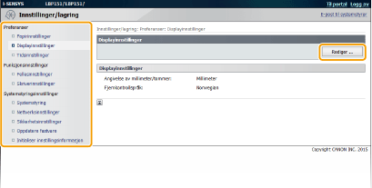 Endre maskininnstillinger