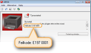 En feilmelding vises i skriverstatusvinduet når det er et problem med utskriftsbehandling , når maskinen ikke kan kommunisere eller når noe annet problem hindrer normal drift. Se følgende liste for mer informasjon om feilmeldinger.