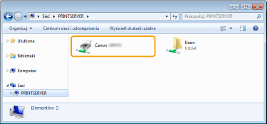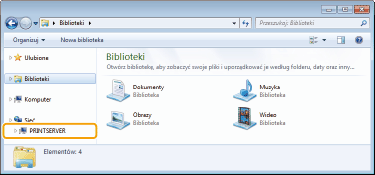 Wybierz serwer druku po kliknięciu apletu [Sieć] lub [Moje miejsca sieciowe].