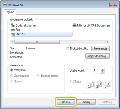 [Urządzenia] [Drukuj] drukarka, której używasz dotknij lub kliknij [Drukuj]Przy drukowaniu tą metodą dostępna jest tylko ograniczona liczba ustawień drukowania.