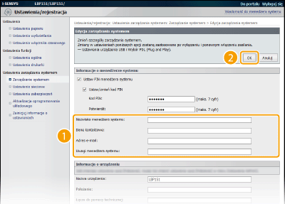 Wprowadź dane kontaktowe menedżera systemu składające się z maksymalnie 32 znaków alfanumerycznych.