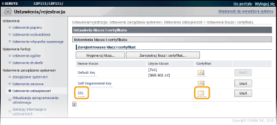 Kliknij [Nazwa klucza] lub [Certyfikat] dla certyfikatu, który chcesz zarejestrować.