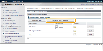 Kliknij pozycję [Ustawienia klucza i certyfikatu] lub [Ustawienia certyfikatu CA].