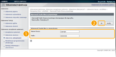 Wprowadź kolejno nazwę pary kluczy i hasło, a następnie kliknij przycisk [OK].